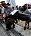 Topeng SBY berhidung panjang sebanyak sembilan buah disita aparat kepolisian dari para peserta aksi tepat di depan kantor Indosat pusat, di Medan Merdeka Barat, saat melakukan longmarch ke Istana Negara. Selain membawa wayang SBY dan topeng Pinokio-SBY, masa aksi juga membawa atribut lainnya, boneka kepala kerbau. Kepala kerbau merupakan simbol pemerintah SBY yang lamban dalam bekerja.