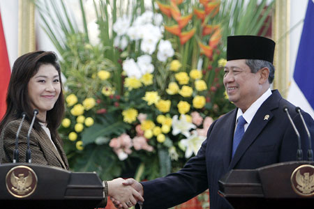 Presiden menerima kunjungan kenegaraan PM Thailand yang baru, Yingluck Shinawatra, (Senin 12/9) pagi. Perdana Menteri wanita pertama di Thailand itu melakukan lawatan pertamanya ke Indonesia sebelum Negara Asean lainnya. ABROR/RUMGAPRES