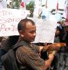 Demonstran kemudian memberikan hadiah seekor ayam jantan kepada KPK sebagai simbol agar KPK berani jantan dan serius menangani dan mengungkap tuntas laporan mereka seadil-adilnya demi kemaslahatan warga Tangerang.