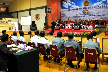 Dalam rangka peringatan ke-66 HUT Tentara Nasional Indonesia, Mabes TNI menyelenggarakan Festival Musik Harmoni TNI, yang digelar di GOR A. Yani Mabes TNI Cilangkap Jakarta Timur (Senin, 26/9). Diikuti oleh delapan peserta terdiri dari Satuan Musik Gabungan (Satsikgab) Ditajenad, Pusdik Ajen dan Ajendam III/Slw; Satuan Musik (Satsik) Kobangdikal Surabaya; Satsik Lanud Adisucipto Yogyakarta; Satuan Korps Musik (Satkorsik) Denma Mabes TNI; Satsikgab Mabes AD, Ajendam Jaya dan Ajen Kostrad; Satsik Mabes AL; Satsik Mabes AU; serta Detasemen Musik (Densik) Pampampres TNI. ISTIMEWA