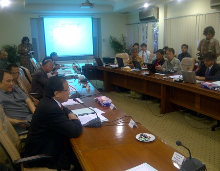 Menteri Sekretaris Kabinet Dipo Alam (kanan) didampingi Staf Khusus Presiden Bidang Bencana dan Bantuan Sosial, Andi Arief, Kamis pagi, di Jakarta Bina Graha, Jakarta, membuka acara diskusi mengenai Kesamaan Karakter Gempa dan Tsunami antara Pantai Timur Tojoku, Sendai, Jepang dengan kawasan Selat Sunda dan Karakatau. [DAR EDY YOGA/RMOL]