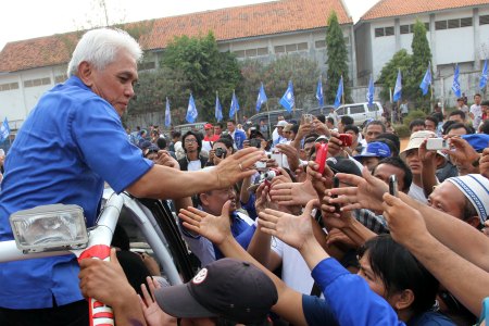 Ketua Umum Partai Amanat Nasional (PAN) Hatta Rajasa bersama sejumlah jajaran Dewan Pengurus Pusat (DPP) partai dan wakil rakyat PAN asal Jawa Tengah, menyapa konsituennya pada acara silahturahmi yang dibalut "Minggu Ceria Bersama PAN", di Lapangan Tri Lomba Joeang, Kota Semarang, Jawa Tengah, Minggu (2/10). Selain diisi dengan berbagai hiburan, acara ini juga dimeriahkan dengan membagikan ratusan doorprize dengan hadiah utama sebuah Mobil Off Road Modifikasi. TEDY KROEN/RAKYAT MERDEKA ONLINE