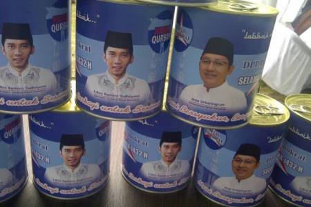Partai Demokrat tidak hanya membagikan hewan kurban dalam bentuk daging segar. Tapi, partai penguasa ini juga menyebarkan hewan kurban yang sudah dikalengkan. Daging yang sudah dikalengkan ini akan disebarkan ke penjuru Indonesia, terutama yang belum 'terjangkau' daging kurban. Sebagai contoh, tampak kemasan daging kurban yang sudah dikalengkan yang disertai foto Ketua Umum DPP Partai Demokrat Anas Urbaningrum dan Sekjen DPP Partai Demokrat Edhie Baskoro Yudhoyono. IHSAN DALIMUNTHE/RMOL