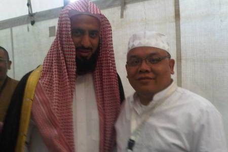 Jamaah haji asal Indonesia memanfaatkan momentum ibadah haji yang dijalankan tahun ini berpose dengan para ulama setempat. Tampak, Ketua Umum Pemuda Muhammadiyah Saleh P. Daulay berpose dengan ulama masjid Al Haram Arab Saudi di tenda para undangan Raja Abdullah. ISTIMEWA