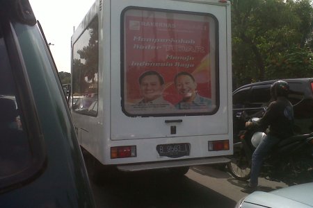 Tunas Indonesia Raya (Tidar) akan menggelar Rapat Kerja Nasional akhir pekan ini di Jakarta. Tampak sebuah mobil box yang dipasang 'iklan' organisasi sayap Partai Gerindra melewati di kawasan Trunojoyo, Jakarta Selatan (Kamis, 17/11). Di mobil tersebut terpampang foto Ketua Dewan Pembina Partai Gerindra Prabowo Subianto dan Ketua Umum Tidar Aryo Djojohadikusumo. ZULHIDAYAT/RMOL