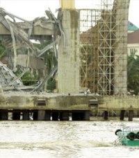 floating bags digunakan untuk menarik kerangka jembatan ke pinggir sungai, selanjutnya sisa korban dievakuasi," urainya lagi.