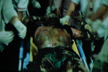 Seorang pria yang belum diketahui identitasnya membakar diri di depan kantor Presiden SBY, Istana Negara, Jalan Medan Merdeka Utara, Jakarta Pusat, sore tadi (Rabu, 7/12). Beberapa doktor Rumah Sakit Cipto Mangunkusumo tengah memberikan perawatan terhadap pelaku aksi bakar diri itu. DWI PAMBUDO/RM