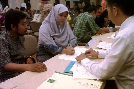 22/60 di gedung Bank Indonesia, Jalan Thamrin, Jakarta Pusat. KPR untuk pegawai kontrak ini diinisiasi Ketua Umum Ikatan Pegawai Bank Indonesia Agus Santoso. Tampak seorang pegawai sedang menandatangani berkas-berkas. ZULHIDAYAT/RMOL