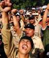 "Sahkan atau kita revolusi. Sahkan atau kita ganti rezim. Sahkan atau kita ganti sistem," kecam Sudiro.