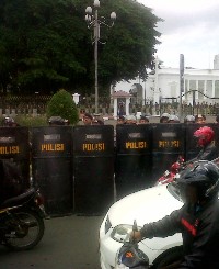 Sebelumnya, pada demonstrasi buruh yang menolak menaikkan harga BBM pada tanggal 21 Maret, terlihat aparat TNI berbaris di dalam Istana Negara, di belakang aparat kepolisian.