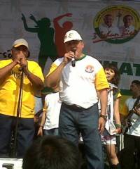 "Terima kasih sebesar-sebesarnya. Kami tidak akan berhasil kalau tidak didukung semua lapisan masyarakat terutama dari Sumatera," kata jagoan Golkar, PPP, dan PDS ini, sesaat sebelum turun dari panggung.