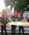 "Kami menuntut tiga tuntutan rakyat (Tritura) jilid 2, yakni turunkan harga, turunkan SBY dan rezimnya yang korup dan cabut undang-undang yang sengsarakan rakyat," seru Yosef Sampurna Nggarang.