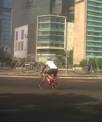 Warga Matraman ini tetap berolah raga walau sedang menjalankan puasa, sedangkan teman-temannya tidak melakukan hal demikian. "Biasanya banyak (bersepeda) sama teman-teman ke sini (Bundaran HI). Tadi sudah saya ping-ping (kontak melalui BB), tapi nggak bangun-bangun, masih tidur kali," ungkapnya sambil ketawa kecil.