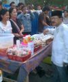 Sebelum tiba di Masjid At-Taubah, Fauzi Bowo menyambangi para penjual makanan dan minuman berbuka puasa (ta'jil) di pertigaan jalan Anggrek. Fauzi Bowo pun membeli sejumlah makanan dan minuman berbuka yang kemudian diminta untuk dibagi-bagikan kepada para warga sekitar yang hendak berbuka puasa beserta para anak jalanan. Diantaranya, minuman cocktail dan kue jajanan berbuka.