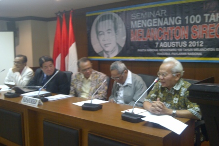 Hari ini (Selasa, 7/8), tepat 100 hari dari kelahiran Melanchton Siregar. Jasa dan perjuangan pria kelahiran 7 Agustus 1912 ini pun diseminarkan di gedung DPD RI, Komplek Parlemen, Senayan, Jakarta. Di antara narasumber yang hadir dalam acara ini adalah sejarawan Taufik Abdulllah, politisi senior PDI Perjuangan Sabam Sirait, dan lain-lain. YESSY ARTADA/RMOL