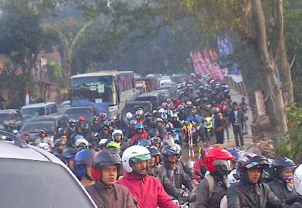 terpantau tak bergerak. Kendaraan macet total sejak pukul 4.00 WIB pagi.