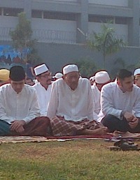Di hari Idul Fitri 1433 H, Minggu (19/8) ini, kedua terpidana yang namanya dikenal publik luas itu berada dalam barisan paling depan shaf shalat. Menggunakan kemeja koko lengkap dengan peci hitam dan kain sarung, Nazaruddin terlihat rapih dan khusyuk sambil mengucapkan takbir.