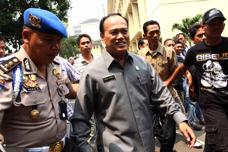 Tersangka kasus pengadaan alat Simulator SIM juga bekas Kepala Korps Lalulintas Mabes Polri Irjen Pol Djoko Susilo dikawal Provos usai menjalani pemeriksaan di Bareskrim Mabes Polri, (Jumat 24/8). Di KPK sudah tersangka, di Polri dia masih jadi saksi. TEDY KROEN/RM