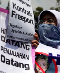 HTI menolak kunjungan Hillary Clinton ke Indonesia sebab setiap langkah diplomatik pejabat tinggi AS ke negara lain, termasuk ke Indonesia, tidak lain adalah untuk makin mencengkeramkan pengaruh AS sebagai negara imperialis di kawasan Asia Tenggara dan Asia Timur, khususnya Indonesia, yang memang sangat strategis bagi kepentingan