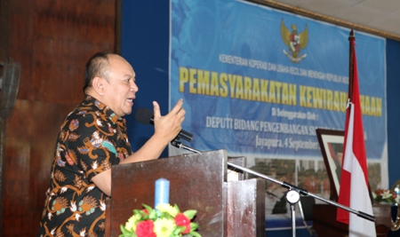 memberikan kuliah umum pada acara Pemasyarkatan Kewirausahaan yang dihadiri