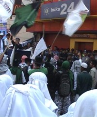 Setelah itu massa bergerak ke jalan Pasar Wetan dan disini kembali melakukan aksi penutupan paksa restoran siap saji yang sedang ramai oleh pengunjung. Pintu masuk pun ditempel dengan poster bertuliskan hujatan terhadap Amerika.