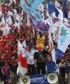 Aksi buruh ini dilakukan secara massal yang juga berlangsung di sejumlah daerah di Indonesia.