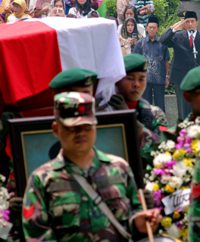 Selanjutnya, Jokowi menyerahkan kembali untuk dikebumikan secara militer di Taman Makam Pahlawan Kalibata.