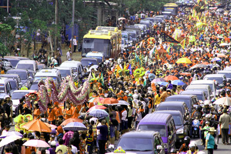 Ribuan warga keturunan tiong hoa berpartisipasi dalam acara China Town Art Festival 2012 di kawasan pecinaan Glodok, Jakarta Pusat, (Minggu, 21/10). Festival tersebut merupakan ungkapan rasa syukur terhadap dewa rezeki yang merupakan budaya Cina. M IQBAL ICHSAN/RM