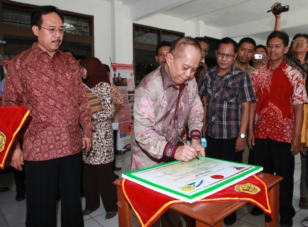 Menteri Koperasi dan UKM Syarief Hasan didampingi Rektor Universitas Suryakancana Cianjur meresmikan Kios Kejujuran seusai memberikan kuliah umum dengan tema Peran Kewirausahaan bagi Mahasiswa di aula serba guna Universitas Suryakancana Cianjur, kemarin. DEDE ZAKI MUBAROK/RMOL