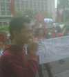 Massa yang geram menunjukkan kekecewaannya pada pemerintah dengan membakar foto Menteri Jero Wacik dan berusaha mendobrak pagar kantor kementerian.