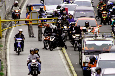 Sejumlah pengendara bermotor menyerobot jalur transjakarta di kawasan Manggarai, Jakarta, Senin (12/11). Pemda DKI Jakarta mulai meninggikan separator busway agar tak dilalui kendaraan bermotor. M IQBAL ICHSAN/RM