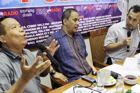Budayawan Mohamad Sobary (kiri) dan Analis Geopolitik, Dirgo D Purbo (tengah) menjadi pembicara diskusi di Warung Daun, Cikini, Jakarta Pusat, Sabtu (17/11). Diskusi bertema Negeri Yang Ruwet, membahas berbagai persoalan yang sedang hangat di Indonesia. WAHYU DWI NUGROHO/RAKYAT MERDEKA