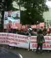 Melanjutkan rangkaian demonstrasi di waktu lalu, Persatuan Mahasiswa Indonesia kembali menyambangi Gedung Telkomsel, Gatot Subroto, Jakarta (Senin siang,19/11).