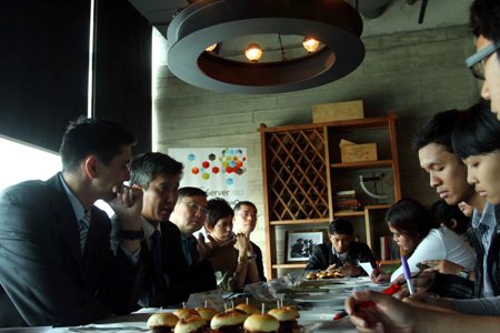 Marketing and Operations Director Microsoft Indonesia Bernard Saisse, Senior Director Accenture Indonesia Hendra Godjali, Enterprise and Partner Group Director Microsoft Indonesia Sugiarto Rahardja, Product Markerting Manager Microsoft Indonesia Meisari Arvini Hidayati dan Account Relationship Director Fiserv memberikan keterangan pers terkait rencana "Indonesia Financial Services Summit 2012 utamakan konsep “Branchless Banking†di Jakarta, Selasa (20/11).