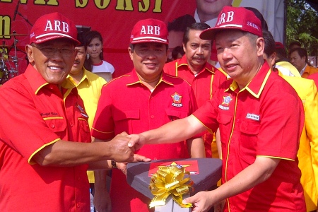 Swadiri Indonesia (SOKSI) Aburizal Bakrie menyerahkan satu unit mobil