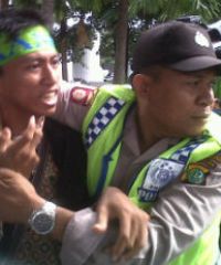 Setelah membuka tali dan sempat menurunkan bendara beberapa meter, langkah aktivis KAMMI ini dihentikan Kepolisian dan Satpam KPK. Atas aksi itu, seorang mahasiswa dipukuli polisi. Dan mahasiswa ini sempat diamankan. [zul]