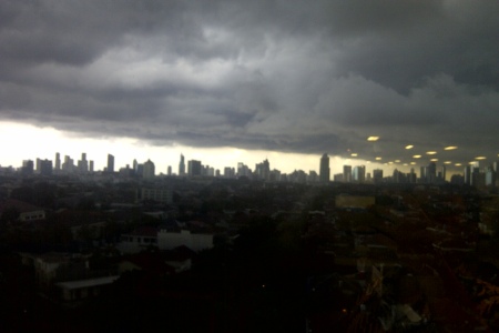 Siang ini (Rabu, 23/1), langit Jakarta kembali gelap. Awan hitam sedikit demi sedikit menggumpal menutupi ibukota. Gambar diambil dari gedung Graha Pena, Di Jalan Kebayoran Lama, pukul 13.35 WIB. Diperkirakan oleh BMKG, hujan besar dan banjir masih meghantui Jakarta hingga tanggal 28 Januari. YAYAN SOPYANI AL HADI/RMOL