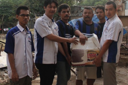 Organisasi sayap PAN, PARRA Indonesia kembali memberikan bantuan untuk korban pasca banjir di Kelurahan Cawang, Jakarta kemarin. Tampak Sekjend DPP PARRA Indonesia Ihsan Jauhari (kedua dari kiri) dan Bendahara Umum DPP PARRA Indonesia Azis Abdul A.A (kanan) memberikan bantuan kepada korban.