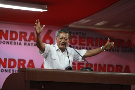 Ketua Umum DPP Gerindra Prof. Suhardi menyampaikan pidato pada acara "Syukuran HUT ke 5 Gerindra" di Kantor DPP Partai Gerindra, Jalan RM Harsono, Jakarta Selatan (Rabu, 6/2). FACEBOOK.COM/GERINDRA