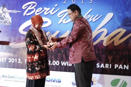 Ketua Umum Cita Tenun Indonesia (CTI) Oktiniwati Ulfa Dariah Hatta Rajasa mendapatkan tropi Manusia Bintang untuk kategori Indonesia Magnificent Award yang diserahkan Pemimpin Umum