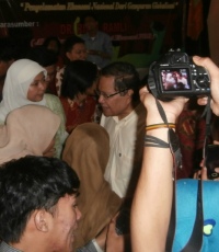 Dr Rizal Ramli sore tadi berubah jadi bak selebriti. Dia baru saja menjadi pembicara tunggal pada seminar bertema “Penyelematan Ekonomi Nasional dari Gempuran Globalisasi†yang digelar mahasiswa FISIP Unisma 45. Rupanya tunas-tunas muda calon pemimpin bangsa di masa depan ini telah ‘jatuh cinta’ kepada tokoh yang menjadi ikon perubahan nasional. Itulah sebabnya usai berebut salaman, mereka pun berebut berfoto ria bersama Ketua Aliansi Rakyat untuk Perubahan (ARUP) ini.