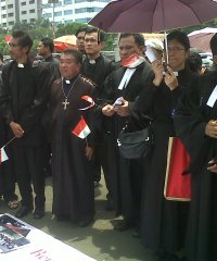 Saat ini, ratusan massa dari Forum Rohaniawan Se-Jabotabek yang juga dihadiri Andreas A. Yewangoe (Ketua PGI) sedang diterima oleh Ketua Majelis Permusyawaratan Rakyat (MPR) RI Taufik Kiemas dan pimpinan MPR di Gedung V MPR/DPR/DPR RI Senayan, Jakarta (Senin, 8/4).