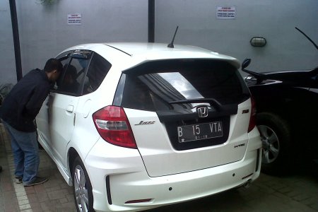 Seseorang tengah mengintip mobil sitaan Komisi Pemberantasan Korupsi (KPK) yang disita terkait kasus impor daging sapi. Mobil honda Jazz dengan pelat B 15 VTA ini diketahui di bawah penguasaan Vitalia Shesa, model yang menjadi saksi untuk kasus Ahmad Fatanah. MUHAMMAD Q RUSYDAN/RMOL