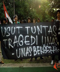 Sudah lima tahun berlalu, kasus kekerasan yang dilakukan aparat terhadap ratusan Mahasiswa UNAS tidak pernah diusut tuntas. Pemerintah hanya berjanji menuntaskan kasus tersebut, sehingga tragedi berdarah itu tetap dibiarkan lamanya.