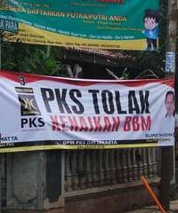 Satpol PP menertibkan spanduk-spanduk PKS yang bertuliskan "Menolak Kenaikan Harga Bahan Bakar Minyak (BBM) Bersubsidi."