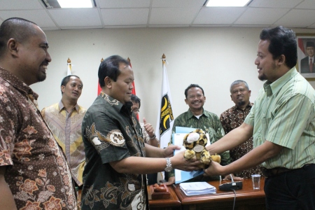 Ketua Fraksi PKS, Hidayat Nur Wahid (tengah) menerima cendramata boneka anak macan dari Pengurus Besar Himpunan Mahasiswa Islam (PB HMI) dan eksponen Aktivis