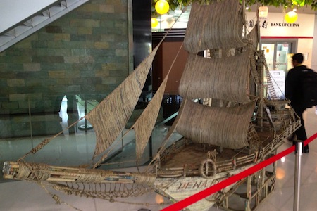 Miniatur kapal Dewa Ruci yang dipajang di lobi utama gedung The East di Mega Kuningan, Jakarta Selatan, ini dibuat dari kertas koran yang digulung kecil dan divernis untuk menyatukan gulungan-gulungannya. Memiliki berat 200 kilogram, miniatur ini dikerjakan oleh 12 narapidana di LP Klas I Tangerang selama dua bulan.