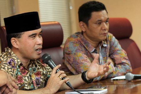 Ketua Komite I DPD Alirman Sori (kiri) bersama Anggota Komisi VIII DPR Fraksi Golkar TB Ace Hasan Syadzily menjadi pembicara dalam diskusi DPD Menyapa, di Gedung Parlemen, Jakarta, Jum'at (26/7). Diskusi ini mengkritisi Kinerja Komisi Pemilihan Umum Daerah (KPUD) dan Potensi Konflik Pemilu Kepala di sejumlah Daerah. Tedy Kroen/Rakyat Merdeka