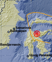 Badan Meteorologi, Klimatologi, dan Geofisika (BMKG) menyampaikan gempa berpusat di wilayah koordinat 1.35 derajat Lintang Selatan dan 120.97 derajat Bujur Timur. Gempa terjadi pukul 05.45 tadi.