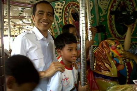 Gubernur DKI Jakarta, Joko Widodo bersama anak jalanan dan panti asuhan saat merayakan Hari Anak Nasional di wahana komedi putar, Treasure Island, Ancol, Jakarta Utara, Kamis (22/8). ELITHA TARIGAN/RMOL